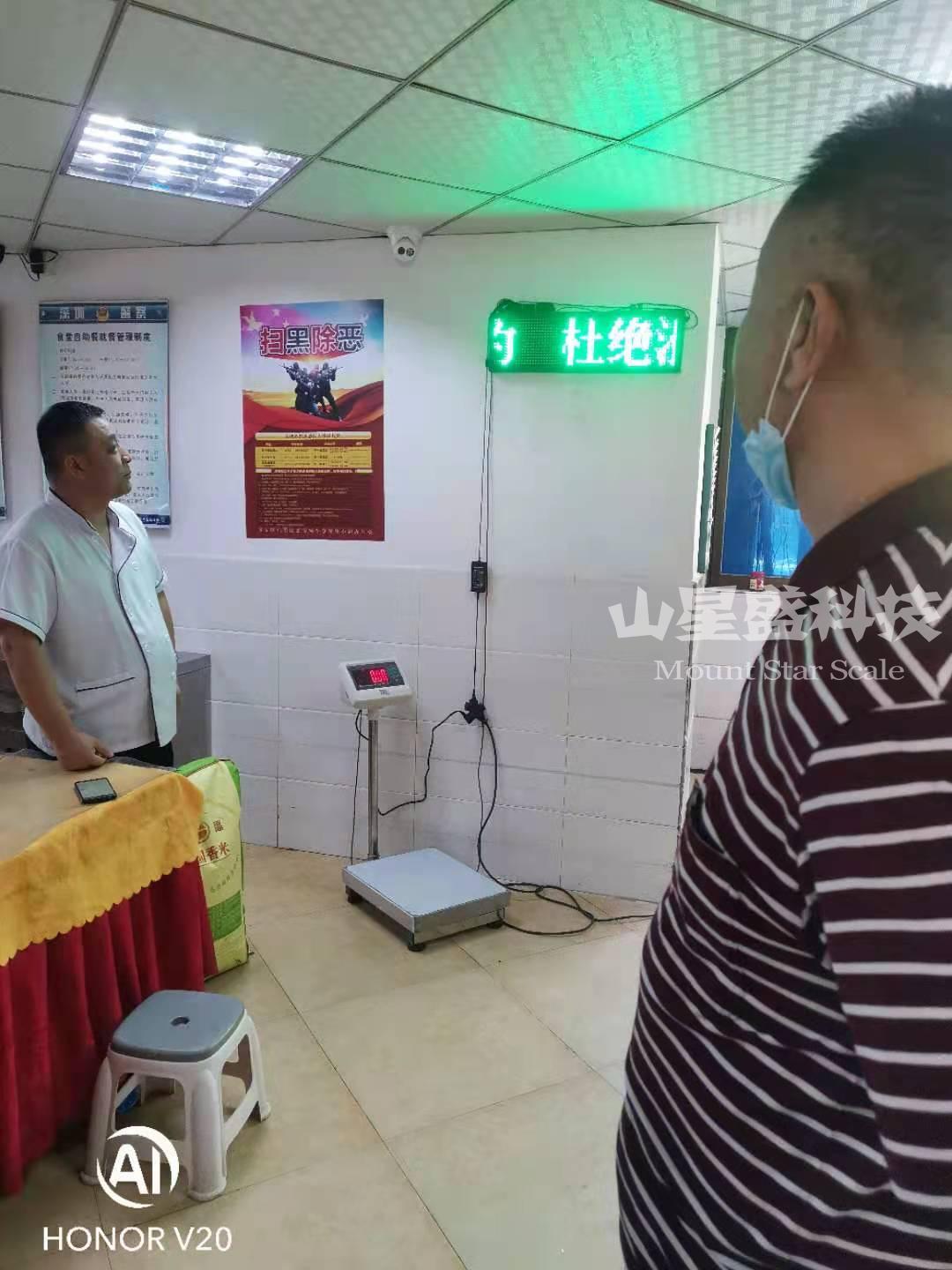 大屏幕和電子秤配合使用,稱重時同步顯示重量,空閑時顯示廣告詞或時間和日期等信息。